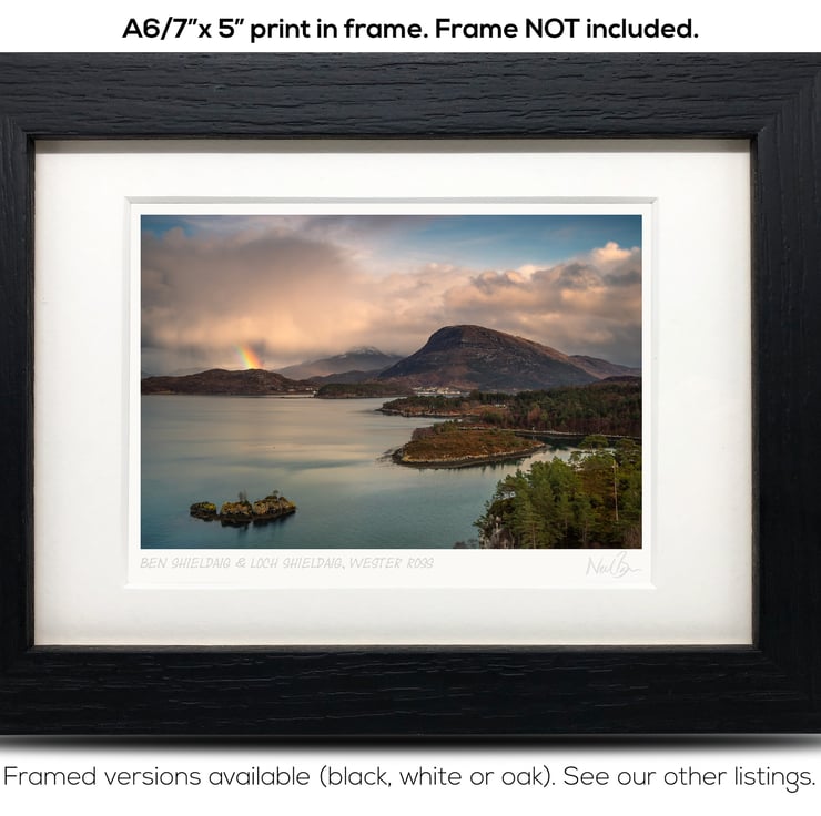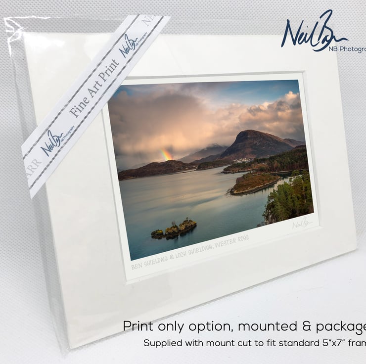 Supplied already mounted, wrapped & with signed labels & certificate, the image is printed on A6 size fine art paper (148x105mm). The actual image size is smaller (see listing images for sizes - image approx. 115x77mm) to allow for the signature & inscription. The 100% acid-free mount is cut to fit standard ready-made frames from high street stores. EXTERNAL mount size is 7"x5". This is the OUTSIDE size of the mount (and thus the size your frame should be).