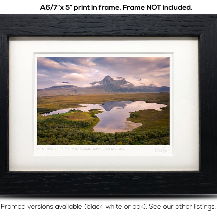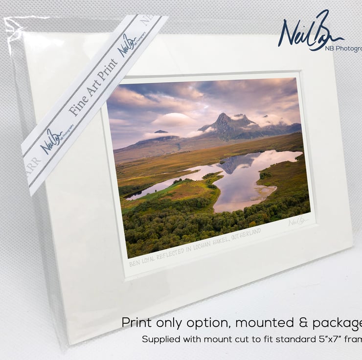 Supplied already mounted, wrapped & with signed labels & certificate, the image is printed on A6 size fine art paper (148x105mm). The actual image size is smaller (see listing images for sizes - image approx. 115x77mm) to allow for the signature & inscription. The 100% acid-free mount is cut to fit standard ready-made frames from high street stores. EXTERNAL mount size is 7"x5". This is the OUTSIDE size of the mount (and thus the size your frame should be).
