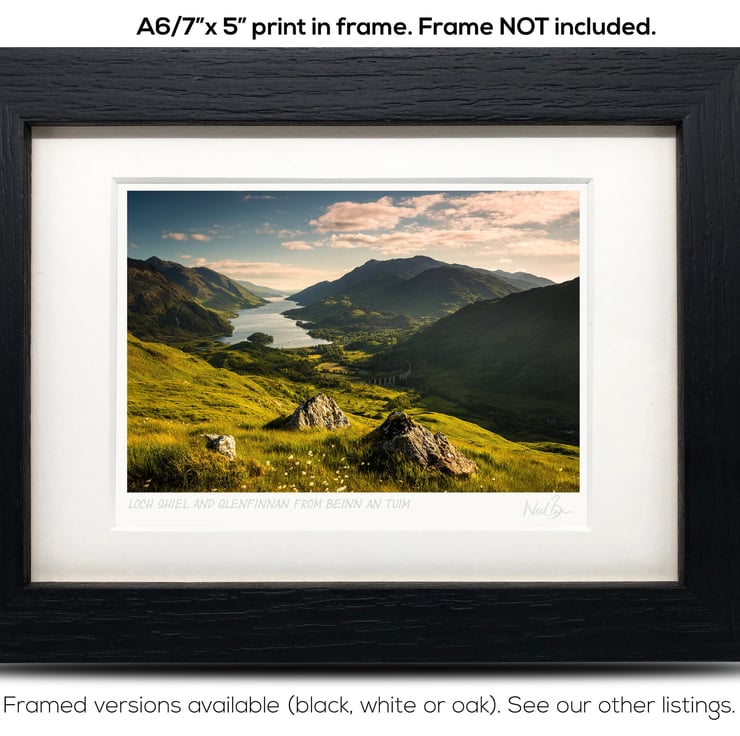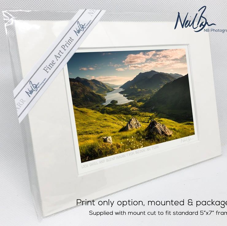 Supplied already mounted, wrapped & with signed labels & certificate, the image is printed on A6 size fine art paper (148x105mm). The actual image size is smaller (see listing images for sizes - image approx. 115x77mm) to allow for the signature & inscription. The 100% acid-free mount is cut to fit standard ready-made frames from high street stores. EXTERNAL mount size is 7"x5". This is the OUTSIDE size of the mount (and thus the size your frame should be).
