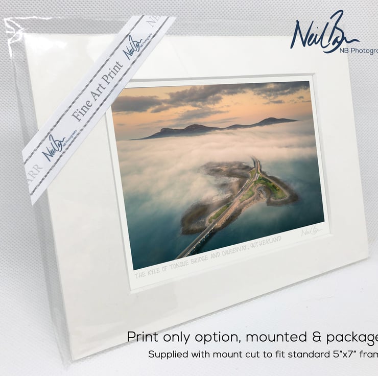 Supplied already mounted, wrapped & with signed labels & certificate, the image is printed on A6 size fine art paper (148x105mm). The actual image size is smaller (see listing images for sizes - image approx. 115x77mm) to allow for the signature & inscription. The 100% acid-free mount is cut to fit standard ready-made frames from high street stores. EXTERNAL mount size is 7"x5". This is the OUTSIDE size of the mount (and thus the size your frame should be).