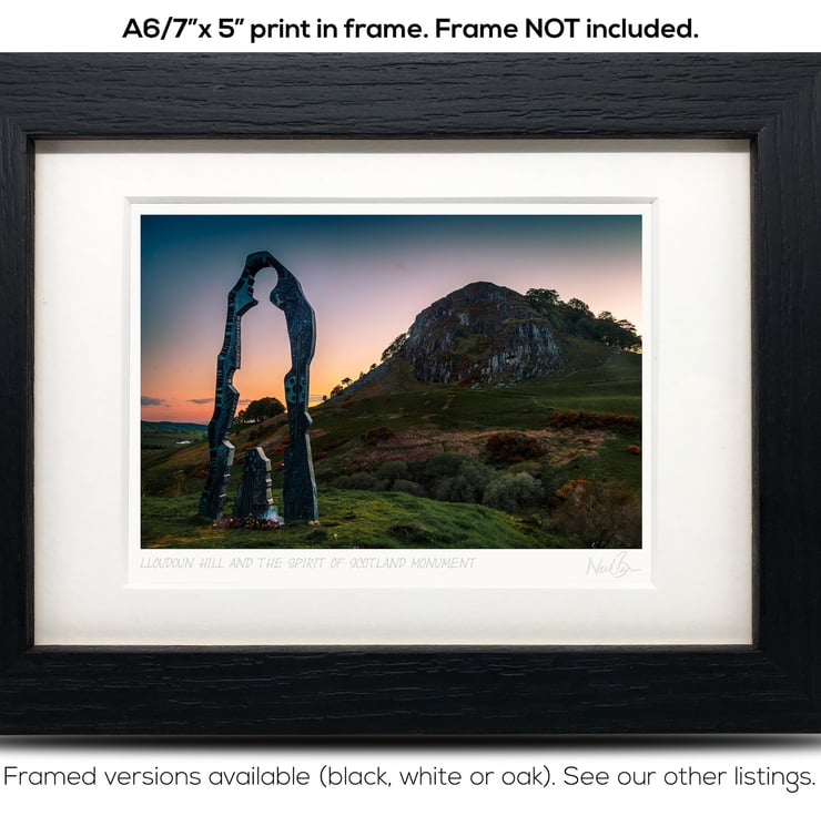 Supplied already mounted, wrapped & with signed labels & certificate, the image is printed on A6 size fine art paper (148x105mm). The actual image size is smaller (see listing images for sizes - image approx. 115x77mm) to allow for the signature & inscription. The 100% acid-free mount is cut to fit standard ready-made frames from high street stores. EXTERNAL mount size is 7"x5". This is the OUTSIDE size of the mount (and thus the size your frame should be).