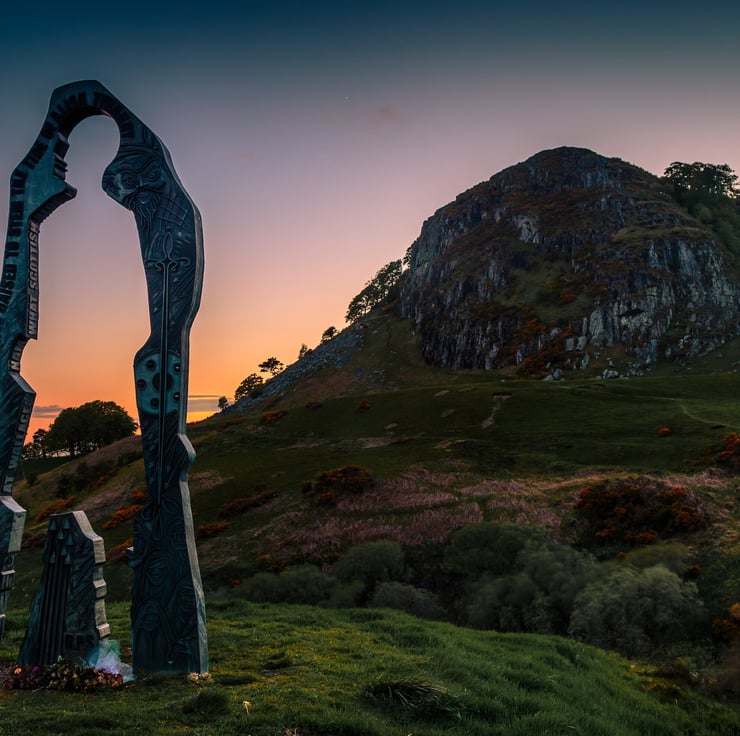 Image: "Spirit of Scotland" - Loudoun Hill and Spirit of Scotland monument at sunset, 5 June 2015 - by Scotland photographer Neil Barr