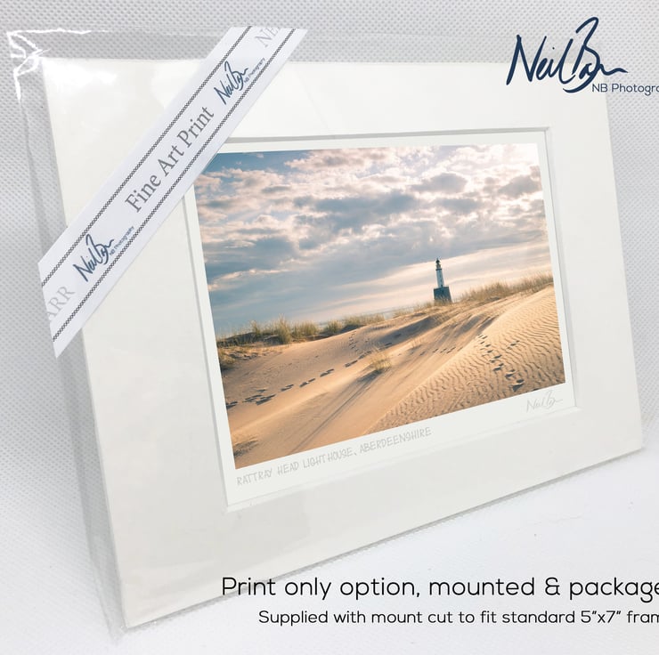 Supplied already mounted, wrapped & with signed labels & certificate, the image is printed on A6 size fine art paper (148x105mm). The actual image size is smaller (see listing images for sizes - image approx. 115x77mm) to allow for the signature & inscription. The 100% acid-free mount is cut to fit standard ready-made frames from high street stores. EXTERNAL mount size is 7"x5". This is the OUTSIDE size of the mount (and thus the size your frame should be).