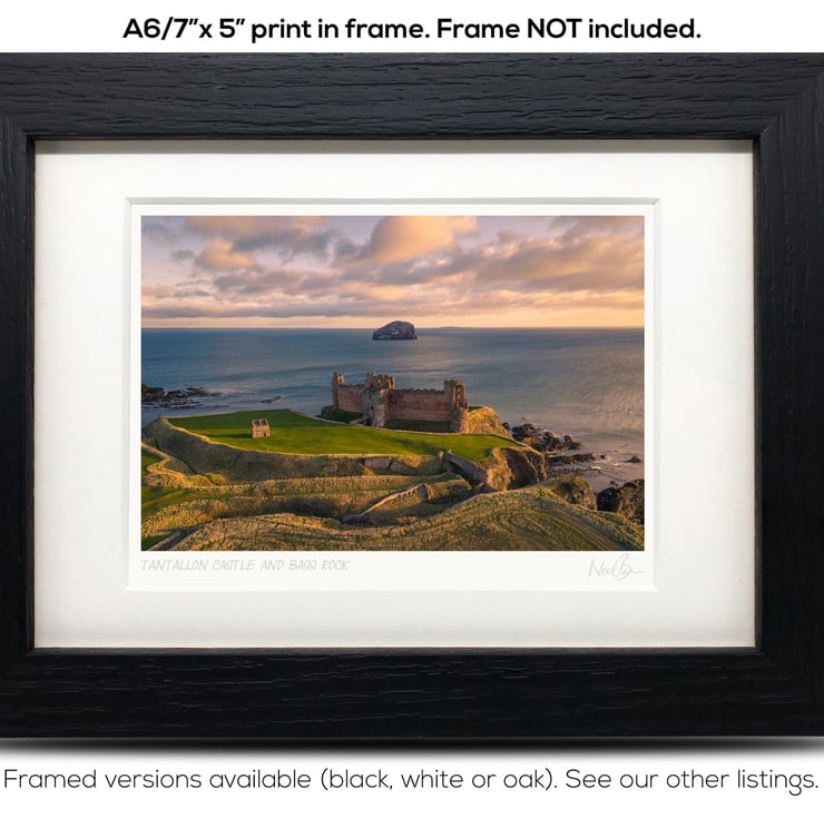 Supplied already mounted, wrapped & with signed labels & certificate, the image is printed on A6 size fine art paper (148x105mm). The actual image size is smaller (see listing images for sizes - image approx. 115x77mm) to allow for the signature & inscription. The 100% acid-free mount is cut to fit standard ready-made frames from high street stores. EXTERNAL mount size is 7"x5". This is the OUTSIDE size of the mount (and thus the size your frame should be).