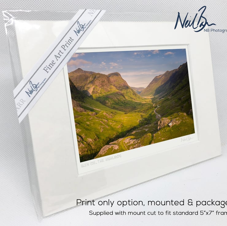 Supplied already mounted, wrapped & with signed labels & certificate, the image is printed on A6 size fine art paper (148x105mm). The actual image size is smaller (see listing images for sizes - image approx. 115x77mm) to allow for the signature & inscription. The 100% acid-free mount is cut to fit standard ready-made frames from high street stores. EXTERNAL mount size is 7"x5". This is the OUTSIDE size of the mount (and thus the size your frame should be).