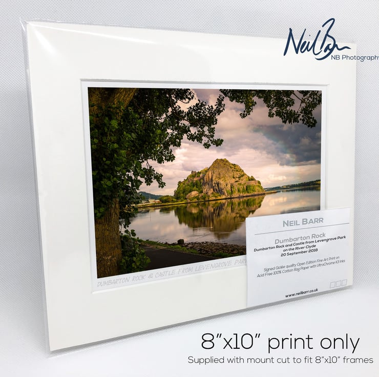 Supplied already mounted, wrapped & with signed labels & certificate, the image is printed on A5 size fine art paper (148x210mm). The actual image size is smaller (see listing images for sizes - image approx. 185x123mm) to allow for the signature & inscription. The 100% acid-free mount is cut to fit standard ready-made frames from high street stores. EXTERNAL mount size is 10"x8". This is the OUTSIDE size of the mount (and thus the size your frame should be).