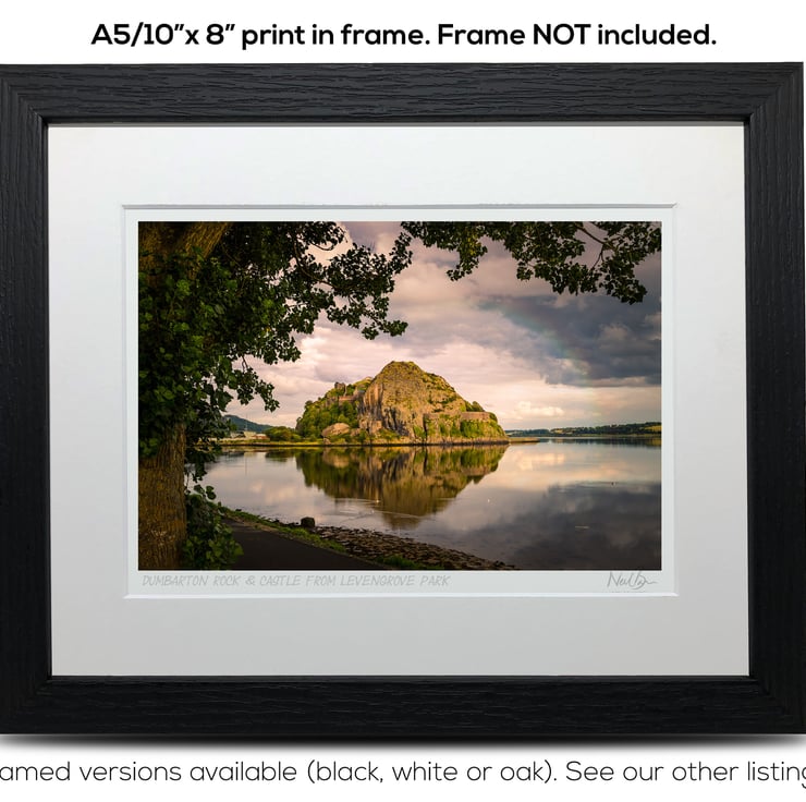 Dumbarton Rock & Castle from Levengrove Park - A5 (10" x 8") Unframed Print