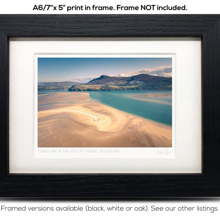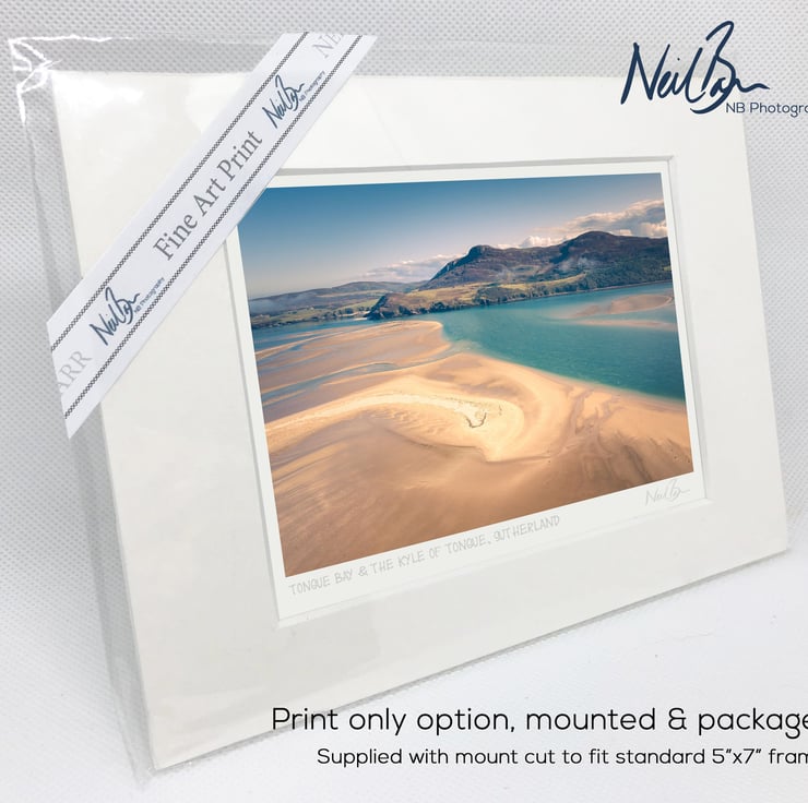 Supplied already mounted, wrapped & with signed labels & certificate, the image is printed on A6 size fine art paper (148x105mm). The actual image size is smaller (see listing images for sizes - image approx. 115x77mm) to allow for the signature & inscription. The 100% acid-free mount is cut to fit standard ready-made frames from high street stores. EXTERNAL mount size is 7"x5". This is the OUTSIDE size of the mount (and thus the size your frame should be).
