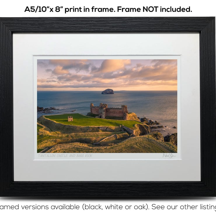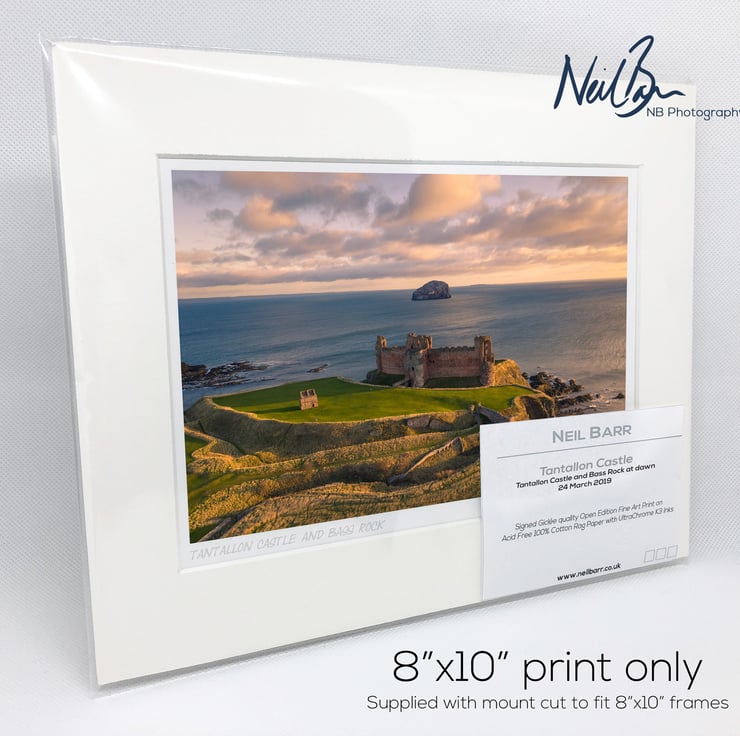 Supplied already mounted, wrapped & with signed labels & certificate, the image is printed on A5 size fine art paper (148x210mm). The actual image size is smaller (see listing images for sizes - image approx. 185x123mm) to allow for the signature & inscription. The 100% acid-free mount is cut to fit standard ready-made frames from high street stores. EXTERNAL mount size is 10"x8". This is the OUTSIDE size of the mount (and thus the size your frame should be).