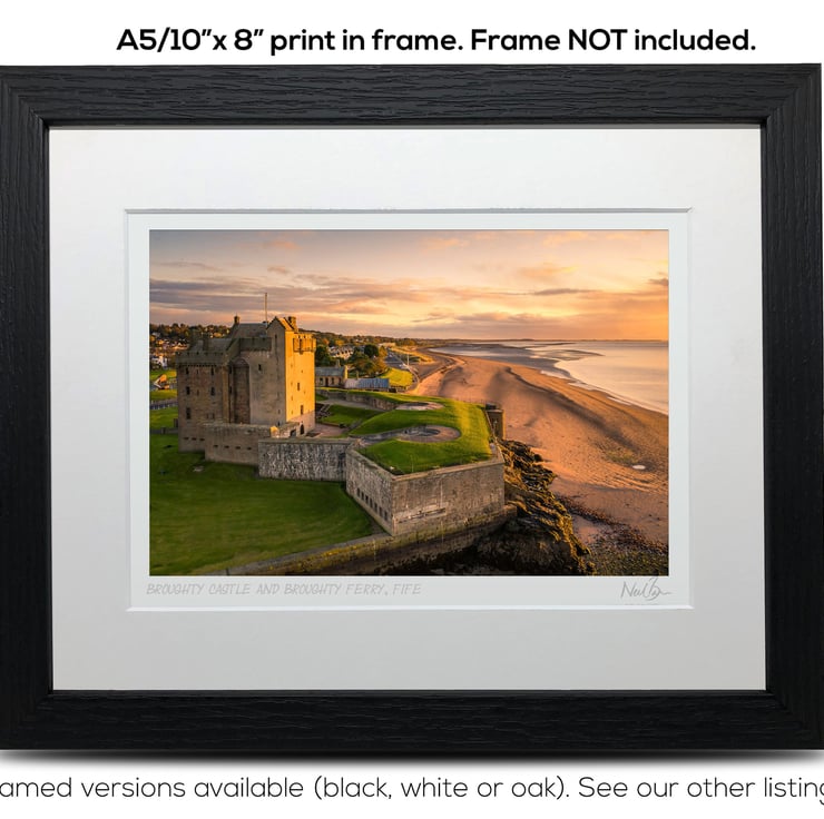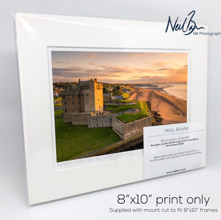 Supplied already mounted, wrapped & with signed labels & certificate, the image is printed on A5 size fine art paper (148x210mm). The actual image size is smaller (see listing images for sizes - image approx. 185x123mm) to allow for the signature & inscription. The 100% acid-free mount is cut to fit standard ready-made frames from high street stores. EXTERNAL mount size is 10"x8". This is the OUTSIDE size of the mount (and thus the size your frame should be).