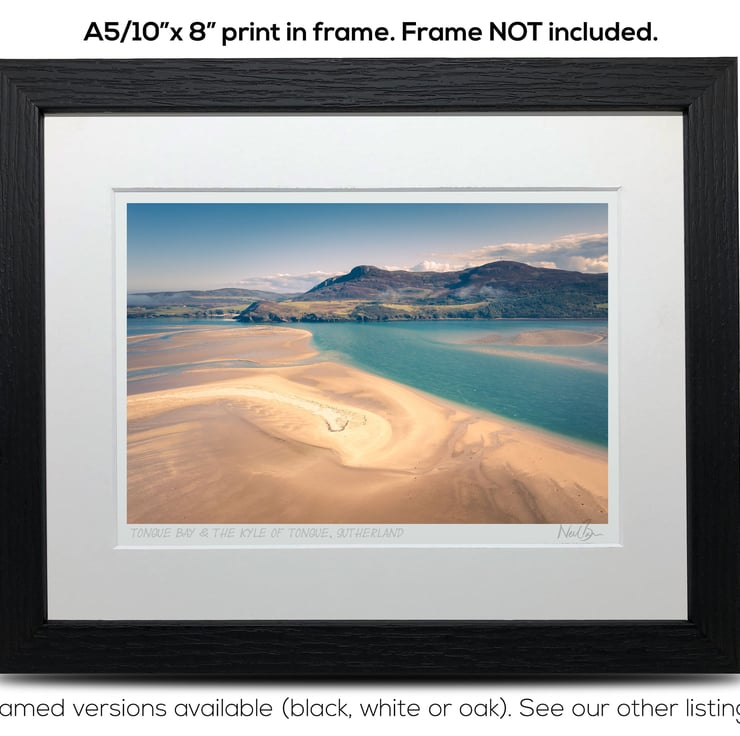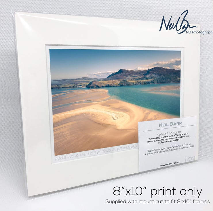 Supplied already mounted, wrapped & with signed labels & certificate, the image is printed on A5 size fine art paper (148x210mm). The actual image size is smaller (see listing images for sizes - image approx. 185x123mm) to allow for the signature & inscription. The 100% acid-free mount is cut to fit standard ready-made frames from high street stores. EXTERNAL mount size is 10"x8". This is the OUTSIDE size of the mount (and thus the size your frame should be).