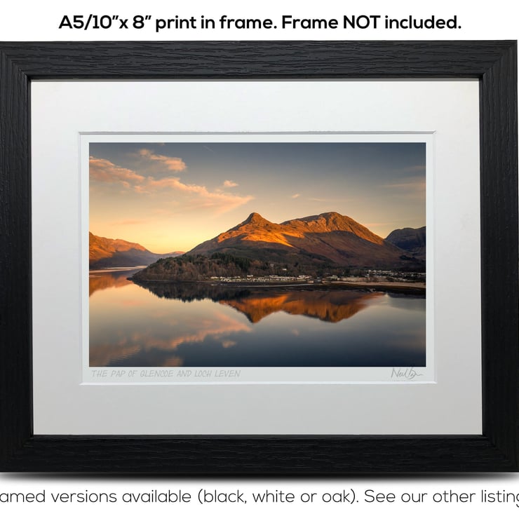 Supplied already mounted, wrapped & with signed labels & certificate, the image is printed on A5 size fine art paper (148x210mm). The actual image size is smaller (see listing images for sizes - image approx. 185x123mm) to allow for the signature & inscription. The 100% acid-free mount is cut to fit standard ready-made frames from high street stores. EXTERNAL mount size is 10"x8". This is the OUTSIDE size of the mount (and thus the size your frame should be).