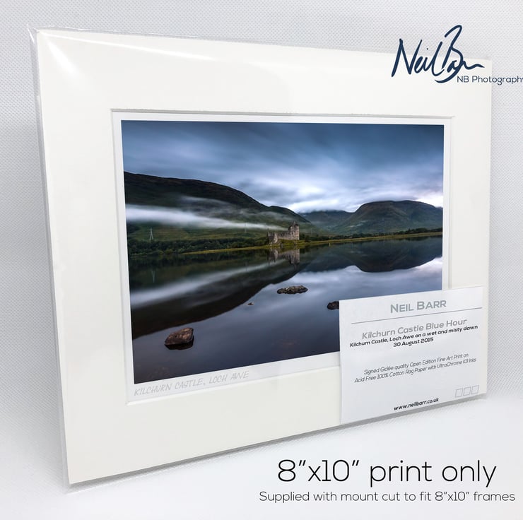 Image: "Kilchurn Castle Blue Hour" - Kilchurn Castle, Loch Awe on a wet and misty dawn, 20 August 2015 - by Scotland photographer Neil Barr