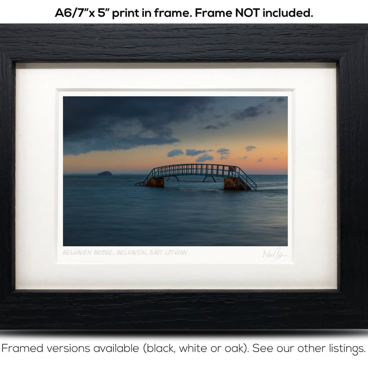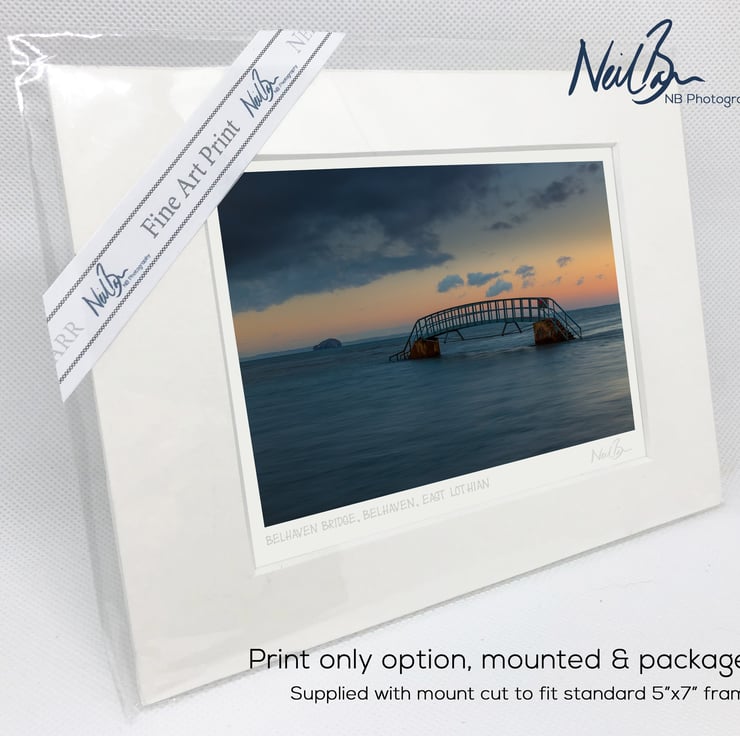 Supplied already mounted, wrapped & with signed labels & certificate, the image is printed on A6 size fine art paper (148x105mm). The actual image size is smaller (see listing images for sizes - image approx. 115x77mm) to allow for the signature & inscription. The 100% acid-free mount is cut to fit standard ready-made frames from high street stores. EXTERNAL mount size is 7"x5". This is the OUTSIDE size of the mount (and thus the size your frame should be).