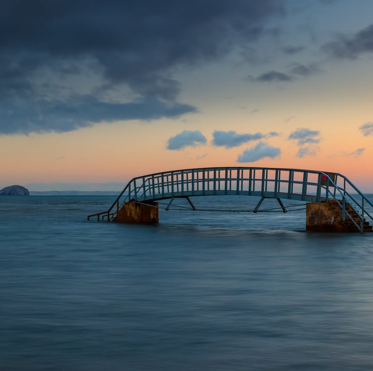 Image: "Bridge to Nowhere" - Belhaven Bridge, Belhaven Beach, Belhaven, East Lothian & Bass Rock at sunset, 6 January 2015 - by Scotland photographer Neil Barr