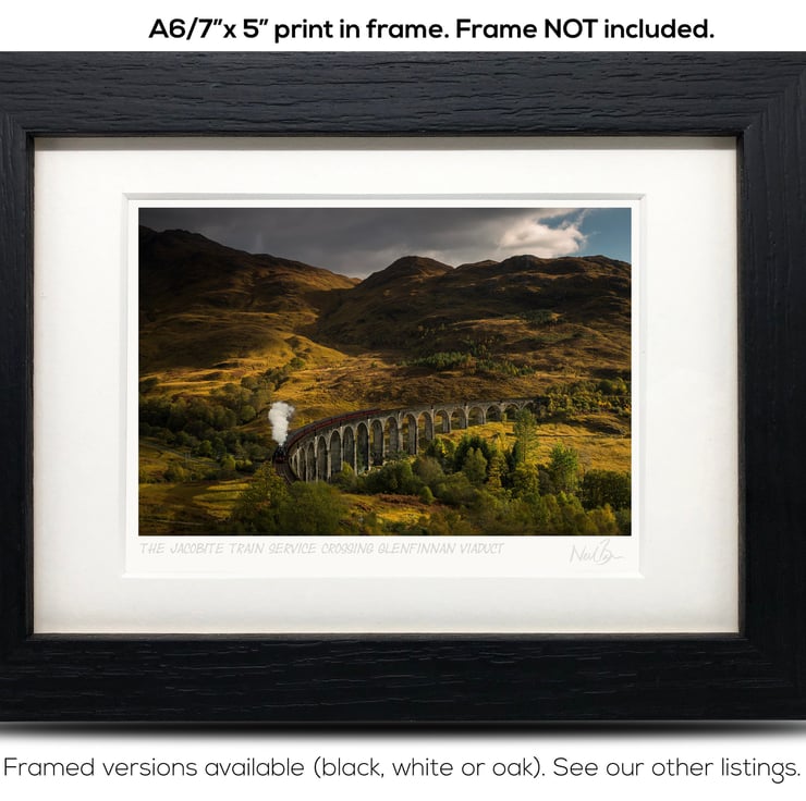 Supplied already mounted, wrapped & with signed labels & certificate, the image is printed on A6 size fine art paper (148x105mm). The actual image size is smaller (see listing images for sizes - image approx. 115x77mm) to allow for the signature & inscription. The 100% acid-free mount is cut to fit standard ready-made frames from high street stores. EXTERNAL mount size is 7"x5". This is the OUTSIDE size of the mount (and thus the size your frame should be).