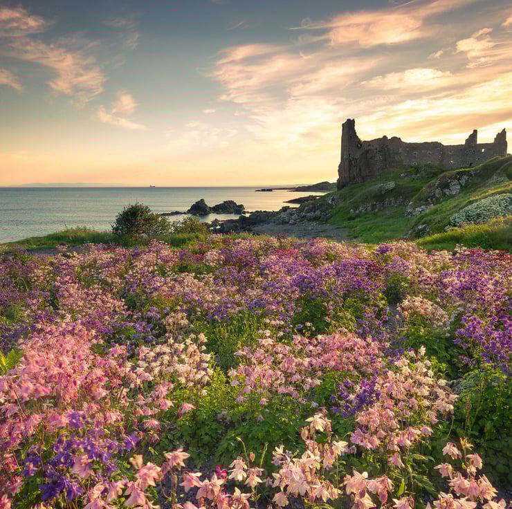 Image: "Dunure Castle" - Dunure Castle and the Firth of Clyde just after dawn, 31 May 2021 - by Scotland photographer Neil Barr