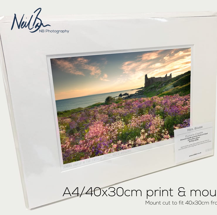 Supplied already mounted, wrapped & with signed labels & certificate, the image is printed on A4 size fine art paper (210x297mm). The actual image size is smaller (see listing images for sizes - image approx. 268x179mm) to allow for the signature & inscription. The 100% acid-free mount is cut to fit standard ready-made frames from high street stores. EXTERNAL mount size is 40cm x 30cm. This is the OUTSIDE size of the mount (and thus the size your frame should be).
