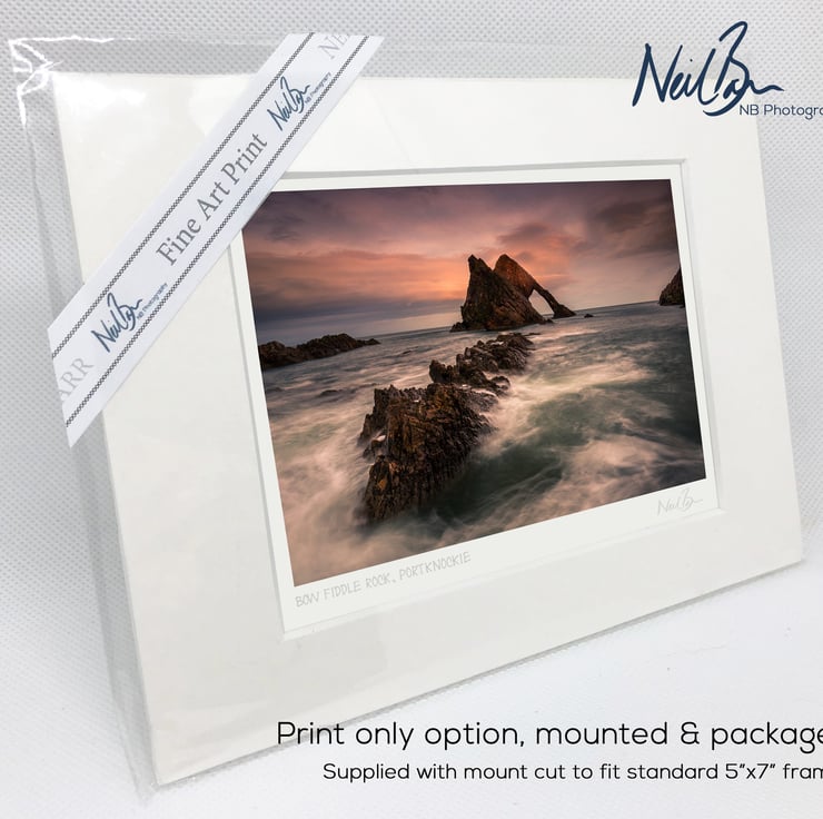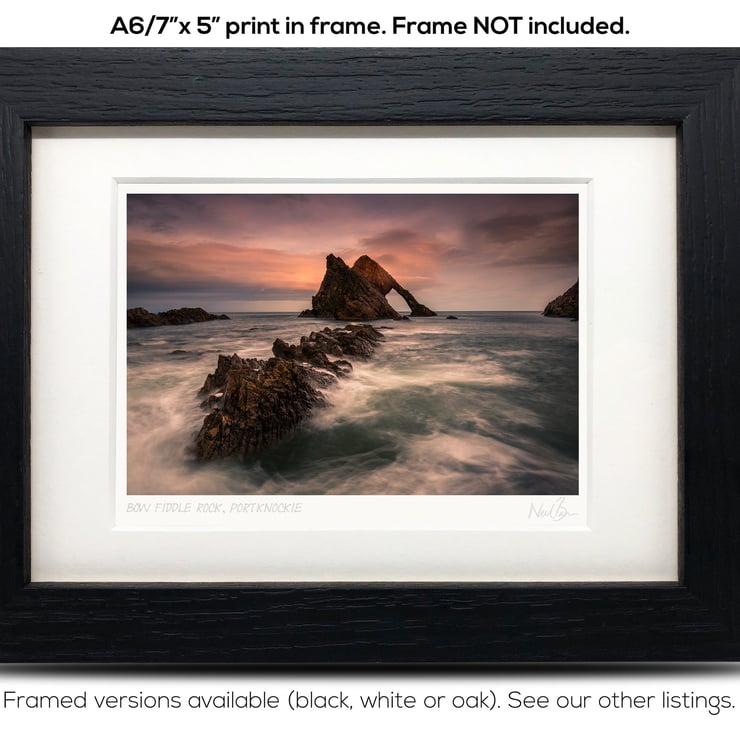 Supplied already mounted, wrapped & with signed labels & certificate, the image is printed on A6 size fine art paper (148x105mm). The actual image size is smaller (see listing images for sizes - image approx. 115x77mm) to allow for the signature & inscription. The 100% acid-free mount is cut to fit standard ready-made frames from high street stores. EXTERNAL mount size is 7"x5". This is the OUTSIDE size of the mount (and thus the size your frame should be).