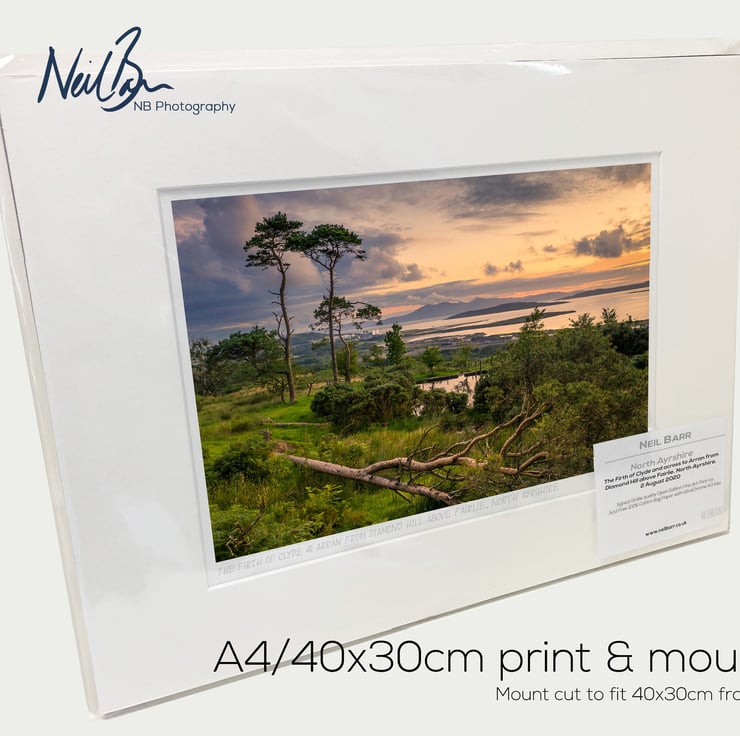 Supplied already mounted, wrapped & with signed labels & certificate, the image is printed on A4 size fine art paper (210x297mm). The actual image size is smaller (see listing images for sizes - image approx. 268x179mm) to allow for the signature & inscription. The 100% acid-free mount is cut to fit standard ready-made frames from high street stores. EXTERNAL mount size is 40cm x 30cm. This is the OUTSIDE size of the mount (and thus the size your frame should be).