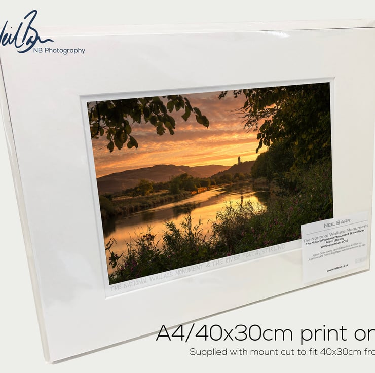 Supplied already mounted, wrapped & with signed labels & certificate, the image is printed on A4 size fine art paper (210x297mm). The actual image size is smaller (see listing images for sizes - image approx. 268x179mm) to allow for the signature & inscription. The 100% acid-free mount is cut to fit standard ready-made frames from high street stores. EXTERNAL mount size is 40cm x 30cm. This is the OUTSIDE size of the mount (and thus the size your frame should be).