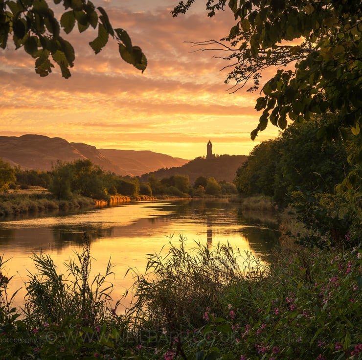 Image: "The National Wallace Monument" - The National Wallace Monument reflected in the River Forth, Stirling, 24 September 2018 - by Scotland photographer Neil Barr