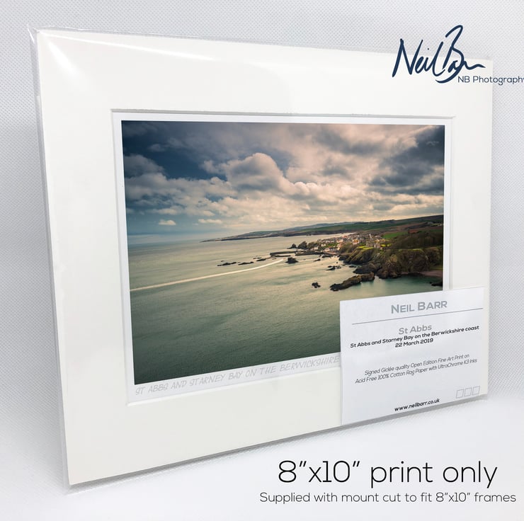 Supplied already mounted, wrapped & with signed labels & certificate, the image is printed on A5 size fine art paper (148x210mm). The actual image size is smaller (see listing images for sizes - image approx. 185x123mm) to allow for the signature & inscription. The 100% acid-free mount is cut to fit standard ready-made frames from high street stores. EXTERNAL mount size is 10"x8". This is the OUTSIDE size of the mount (and thus the size your frame should be).