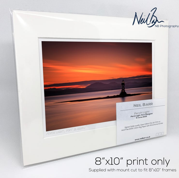 Supplied already mounted, wrapped & with signed labels & certificate, the image is printed on A5 size fine art paper (148x210mm). The actual image size is smaller (see listing images for sizes - image approx. 185x123mm) to allow for the signature & inscription. The 100% acid-free mount is cut to fit standard ready-made frames from high street stores. EXTERNAL mount size is 10"x8". This is the OUTSIDE size of the mount (and thus the size your frame should be).