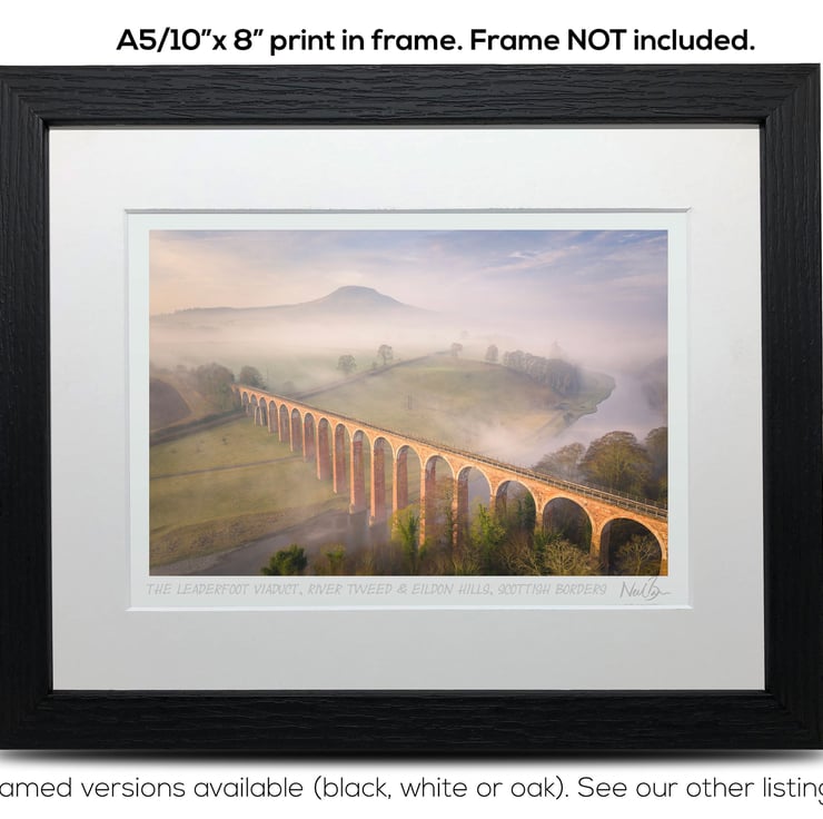 Supplied already mounted, wrapped & with signed labels & certificate, the image is printed on A5 size fine art paper (148x210mm). The actual image size is smaller (see listing images for sizes - image approx. 185x123mm) to allow for the signature & inscription. The 100% acid-free mount is cut to fit standard ready-made frames from high street stores. EXTERNAL mount size is 10"x8". This is the OUTSIDE size of the mount (and thus the size your frame should be).