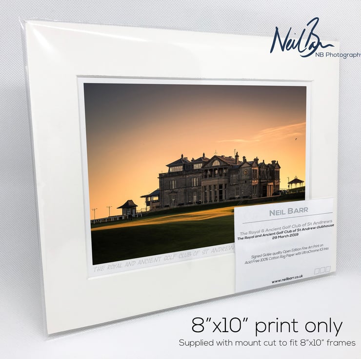 Supplied already mounted, wrapped & with signed labels & certificate, the image is printed on A5 size fine art paper (148x210mm). The actual image size is smaller (see listing images for sizes - image approx. 185x123mm) to allow for the signature & inscription. The 100% acid-free mount is cut to fit standard ready-made frames from high street stores. EXTERNAL mount size is 10"x8". This is the OUTSIDE size of the mount (and thus the size your frame should be).