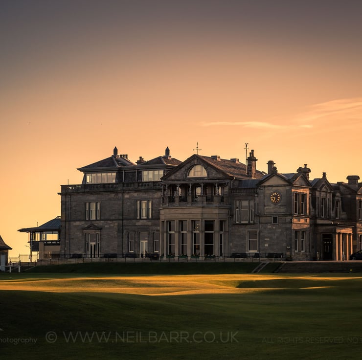 Image: "The Royal and Ancient Golf Club of St Andrews" - The Royal and Ancient Golf Club of St Andrew clubhouse at dawn, 29 March 2019 - by Scotland photographer Neil Barr