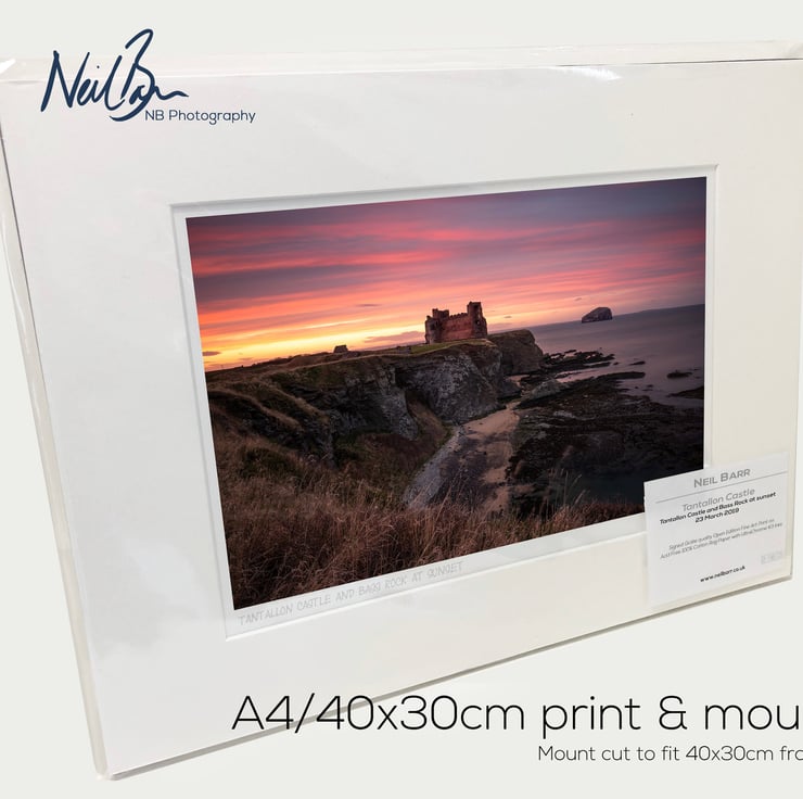 Supplied already mounted, wrapped & with signed labels & certificate, the image is printed on A4 size fine art paper (210x297mm). The actual image size is smaller (see listing images for sizes - image approx. 268x179mm) to allow for the signature & inscription. The 100% acid-free mount is cut to fit standard ready-made frames from high street stores. EXTERNAL mount size is 40cm x 30cm. This is the OUTSIDE size of the mount (and thus the size your frame should be).