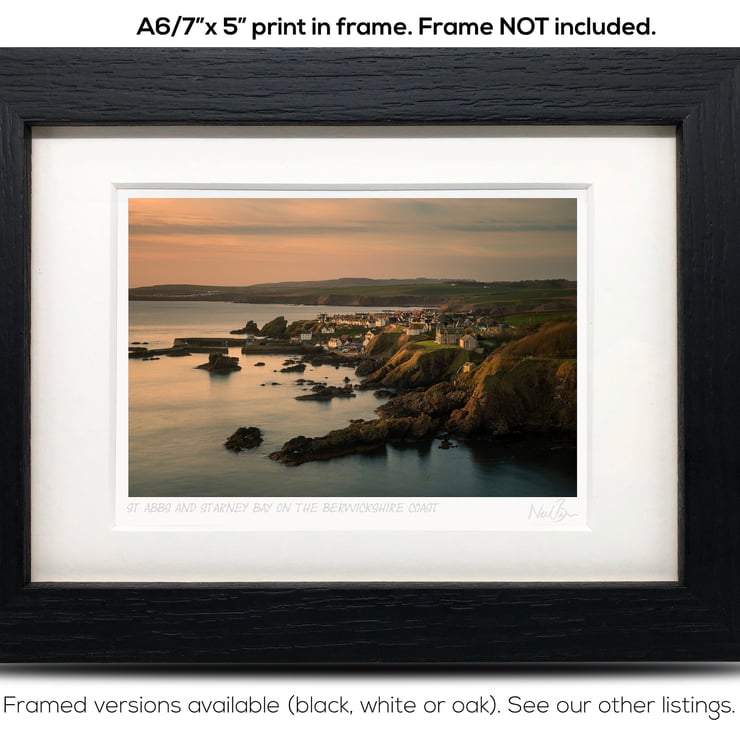 Supplied already mounted, wrapped & with signed labels & certificate, the image is printed on A6 size fine art paper (148x105mm). The actual image size is smaller (see listing images for sizes - image approx. 115x77mm) to allow for the signature & inscription. The 100% acid-free mount is cut to fit standard ready-made frames from high street stores. EXTERNAL mount size is 7"x5". This is the OUTSIDE size of the mount (and thus the size your frame should be).