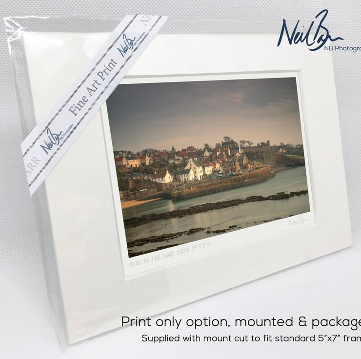 Supplied already mounted, wrapped & with signed labels & certificate, the image is printed on A6 size fine art paper (148x105mm). The actual image size is smaller (see listing images for sizes - image approx. 115x77mm) to allow for the signature & inscription. The 100% acid-free mount is cut to fit standard ready-made frames from high street stores. EXTERNAL mount size is 7"x5". This is the OUTSIDE size of the mount (and thus the size your frame should be).