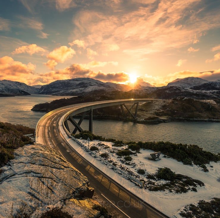 Image: "Kylesku" - Kylesku Bridge across Loch a' Ch irn Bh in in Sutherland at sunrise, 12 February 2018 - by Scotland photographer Neil Barr
