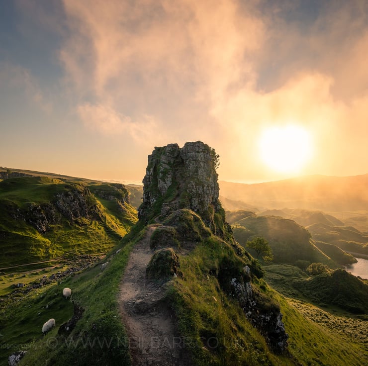 Image: "Castle Ewen" - Castle Ewen in Fairy Glen on the Isle of Skye as some low cloud rolls in off the sea at sunset, 27 June 2019 - by Scotland photographer Neil Barr