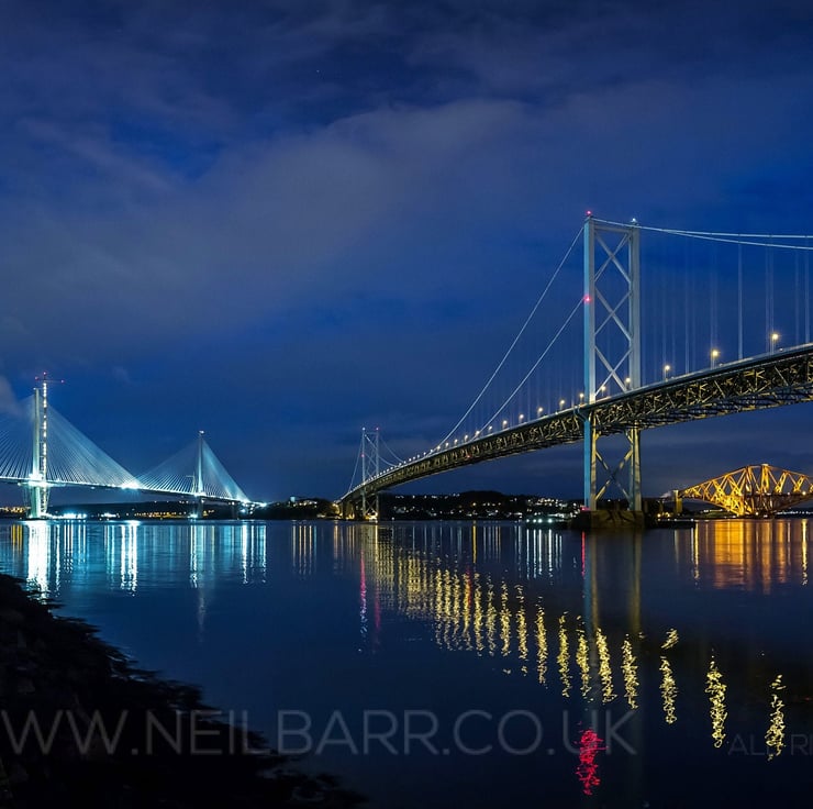 Image: "The Three Bridges" - The Queensferry Crossing, The Forth Road Bridge and the Forth Bridge across the River Forth, from Port Edgar, 6 March 2017 - by Scotland photographer Neil Barr