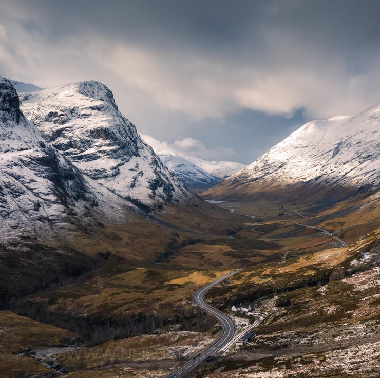 Image: "Glen Coe" - Looking down Glen Coe past the Three Sisters, 26 February 2020 - by Scotland photographer Neil Barr