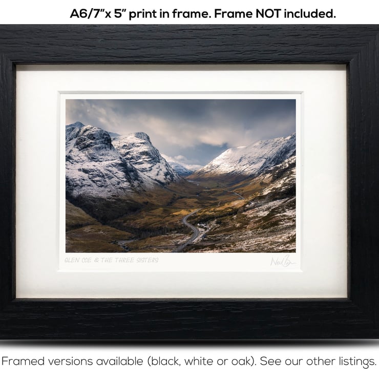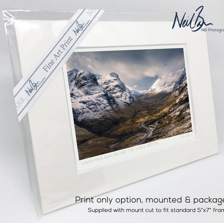 Supplied already mounted, wrapped & with signed labels & certificate, the image is printed on A6 size fine art paper (148x105mm). The actual image size is smaller (see listing images for sizes - image approx. 115x77mm) to allow for the signature & inscription. The 100% acid-free mount is cut to fit standard ready-made frames from high street stores. EXTERNAL mount size is 7"x5". This is the OUTSIDE size of the mount (and thus the size your frame should be).