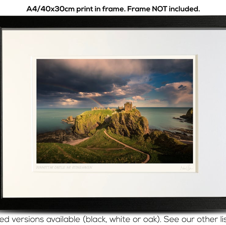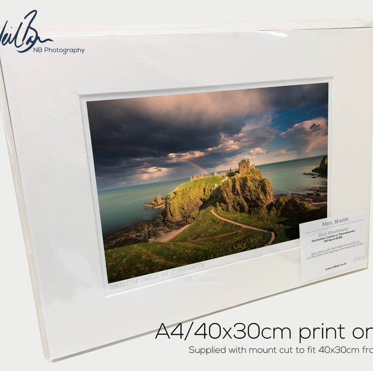 Supplied already mounted, wrapped & with signed labels & certificate, the image is printed on A4 size fine art paper (210x297mm). The actual image size is smaller (see listing images for sizes - image approx. 268x179mm) to allow for the signature & inscription. The 100% acid-free mount is cut to fit standard ready-made frames from high street stores. EXTERNAL mount size is 40cm x 30cm. This is the OUTSIDE size of the mount (and thus the size your frame should be).
