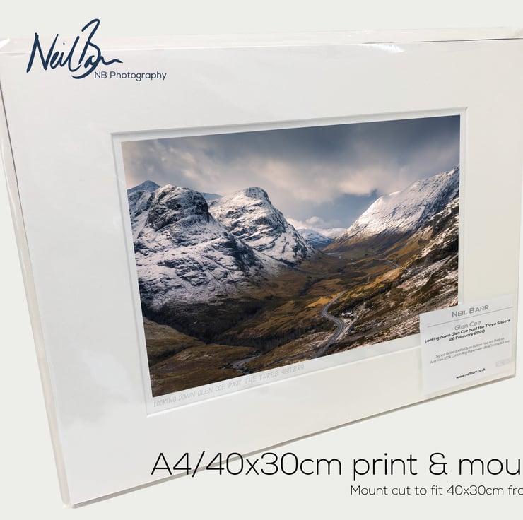 Supplied already mounted, wrapped & with signed labels & certificate, the image is printed on A4 size fine art paper (210x297mm). The actual image size is smaller (see listing images for sizes - image approx. 268x179mm) to allow for the signature & inscription. The 100% acid-free mount is cut to fit standard ready-made frames from high street stores. EXTERNAL mount size is 40cm x 30cm. This is the OUTSIDE size of the mount (and thus the size your frame should be).
