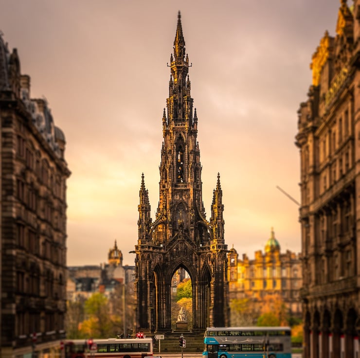 Image: "The Scott Monument" - The Scott Monument to Sir Walter Scott in Princes Street Gardens, Edinburgh at dawn, 26 April 2019 - by Scotland photographer Neil Barr