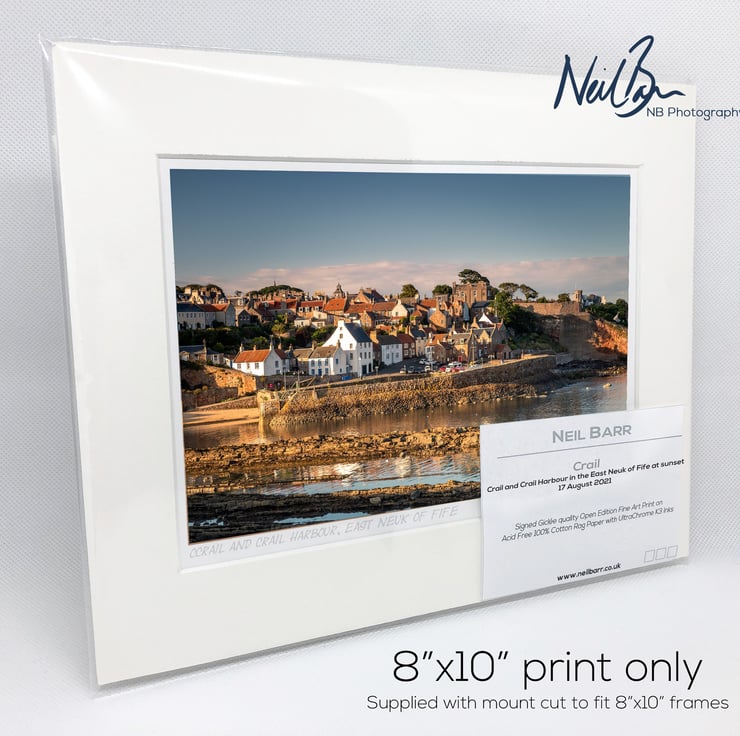 Supplied already mounted, wrapped & with signed labels & certificate, the image is printed on A5 size fine art paper (148x210mm). The actual image size is smaller (see listing images for sizes - image approx. 185x123mm) to allow for the signature & inscription. The 100% acid-free mount is cut to fit standard ready-made frames from high street stores. EXTERNAL mount size is 10"x8". This is the OUTSIDE size of the mount (and thus the size your frame should be).