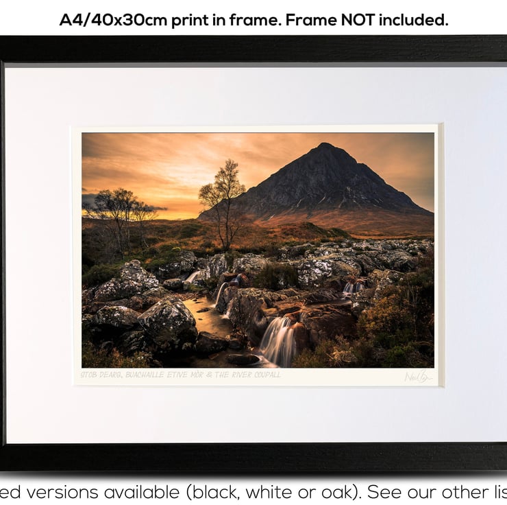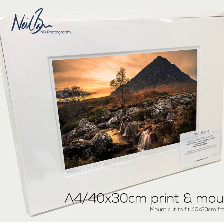 Supplied already mounted, wrapped & with signed labels & certificate, the image is printed on A4 size fine art paper (210x297mm). The actual image size is smaller (see listing images for sizes - image approx. 268x179mm) to allow for the signature & inscription. The 100% acid-free mount is cut to fit standard ready-made frames from high street stores. EXTERNAL mount size is 40cm x 30cm. This is the OUTSIDE size of the mount (and thus the size your frame should be).