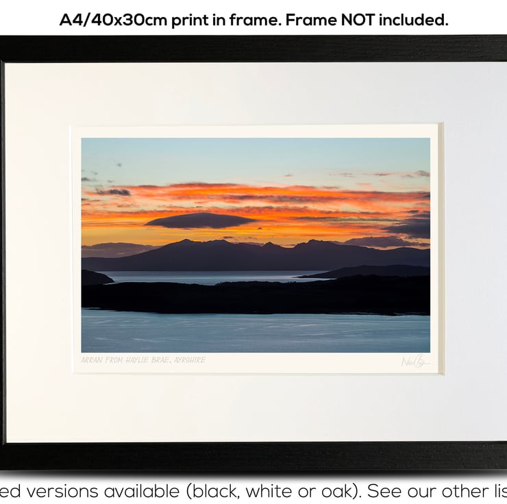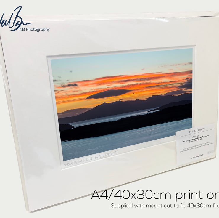 Supplied already mounted, wrapped & with signed labels & certificate, the image is printed on A4 size fine art paper (210x297mm). The actual image size is smaller (see listing images for sizes - image approx. 268x179mm) to allow for the signature & inscription. The 100% acid-free mount is cut to fit standard ready-made frames from high street stores. EXTERNAL mount size is 40cm x 30cm. This is the OUTSIDE size of the mount (and thus the size your frame should be).