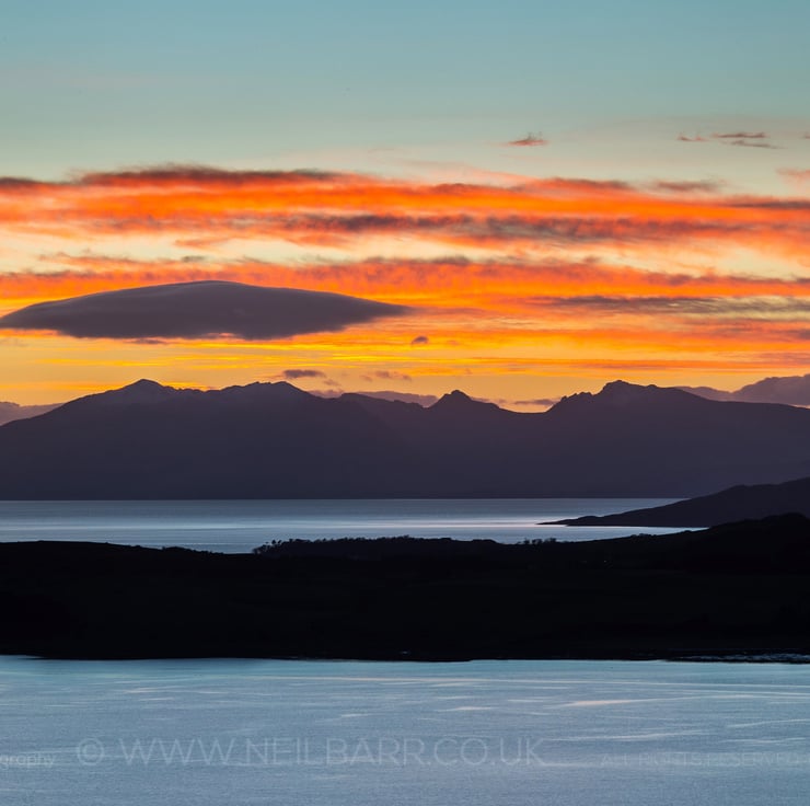 Image: "Arran" - Arran from Haylie Brae at sunset, 3 January 2015 - by Scotland photographer Neil Barr