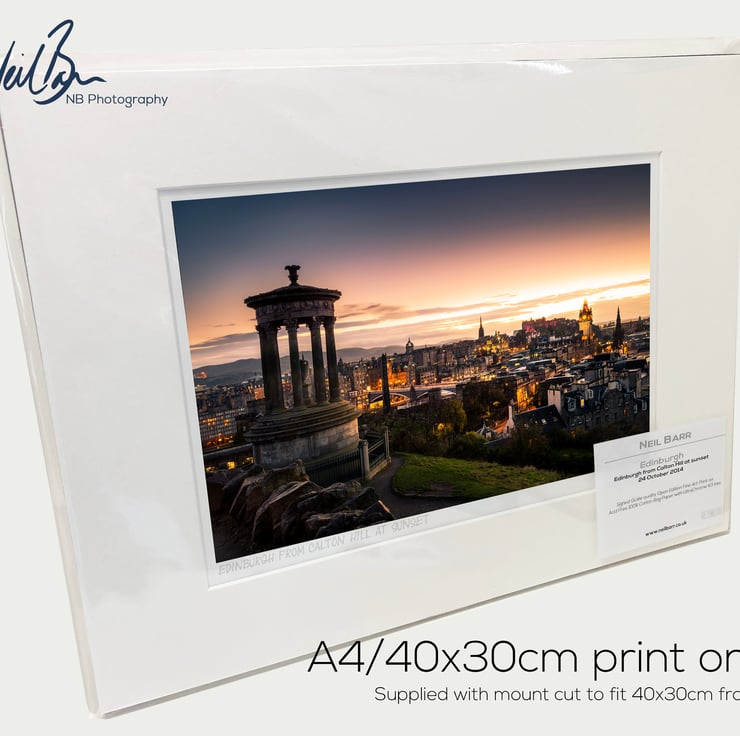 Supplied already mounted, wrapped & with signed labels & certificate, the image is printed on A4 size fine art paper (210x297mm). The actual image size is smaller (see listing images for sizes - image approx. 268x179mm) to allow for the signature & inscription. The 100% acid-free mount is cut to fit standard ready-made frames from high street stores. EXTERNAL mount size is 40cm x 30cm. This is the OUTSIDE size of the mount (and thus the size your frame should be).