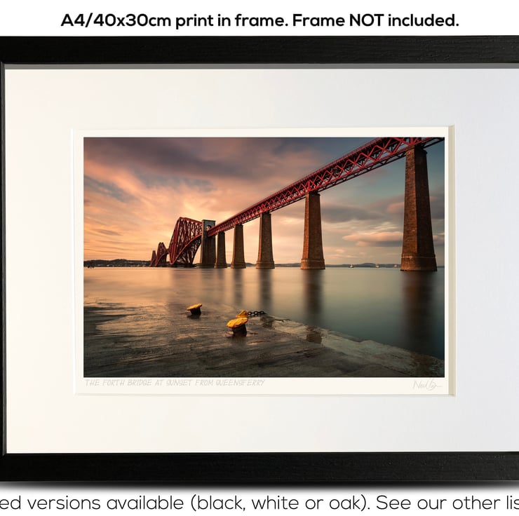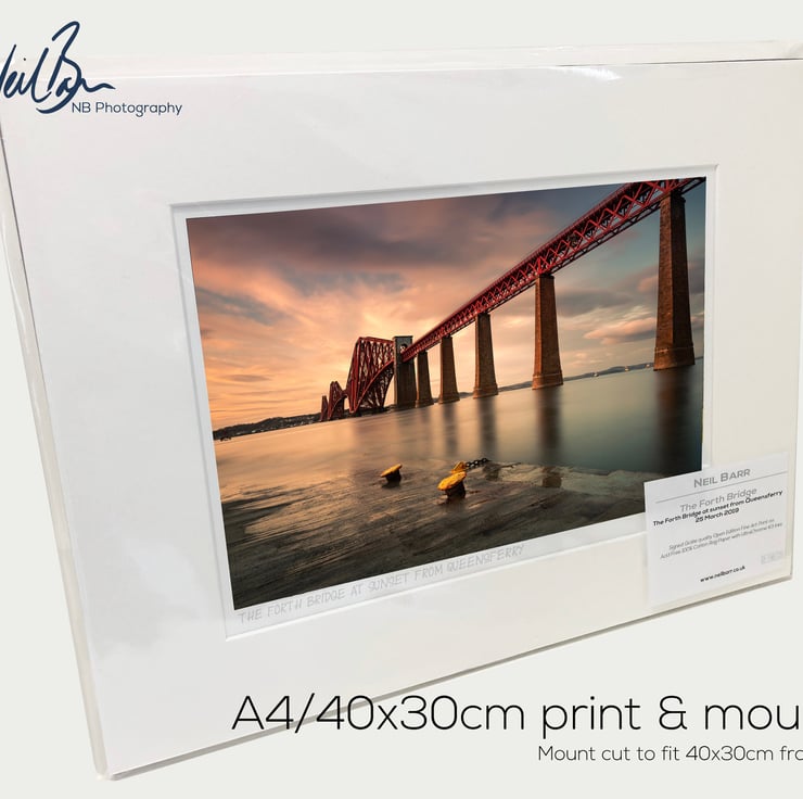 Supplied already mounted, wrapped & with signed labels & certificate, the image is printed on A4 size fine art paper (210x297mm). The actual image size is smaller (see listing images for sizes - image approx. 268x179mm) to allow for the signature & inscription. The 100% acid-free mount is cut to fit standard ready-made frames from high street stores. EXTERNAL mount size is 40cm x 30cm. This is the OUTSIDE size of the mount (and thus the size your frame should be).