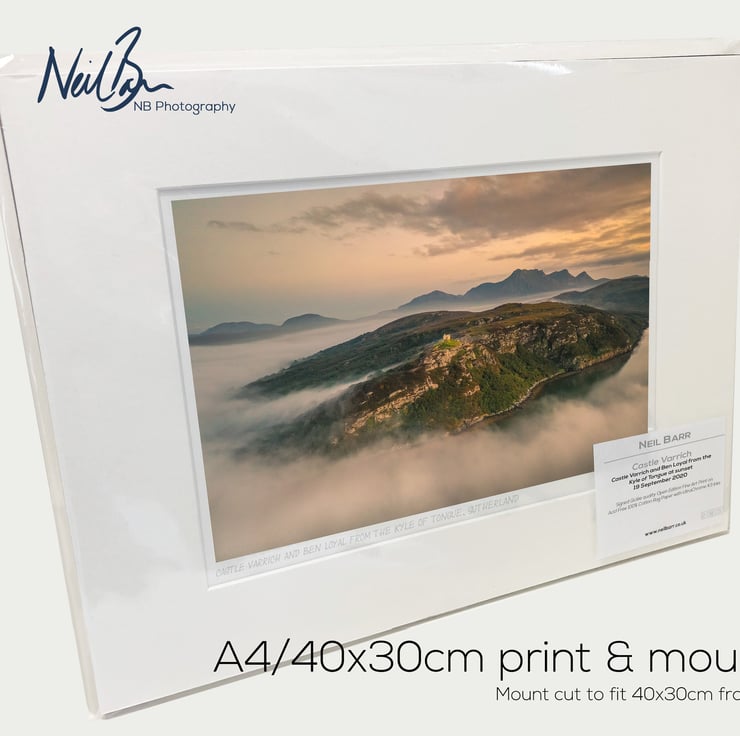 Supplied already mounted, wrapped & with signed labels & certificate, the image is printed on A4 size fine art paper (210x297mm). The actual image size is smaller (see listing images for sizes - image approx. 268x179mm) to allow for the signature & inscription. The 100% acid-free mount is cut to fit standard ready-made frames from high street stores. EXTERNAL mount size is 40cm x 30cm. This is the OUTSIDE size of the mount (and thus the size your frame should be).