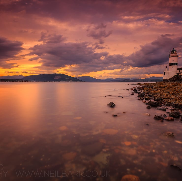 Image: "Cloch Lighthouse" - Cloch Lighthouse, Gourock and the Firth of Clyde at sunset, 3 July 2015 - by Scotland photographer Neil Barr